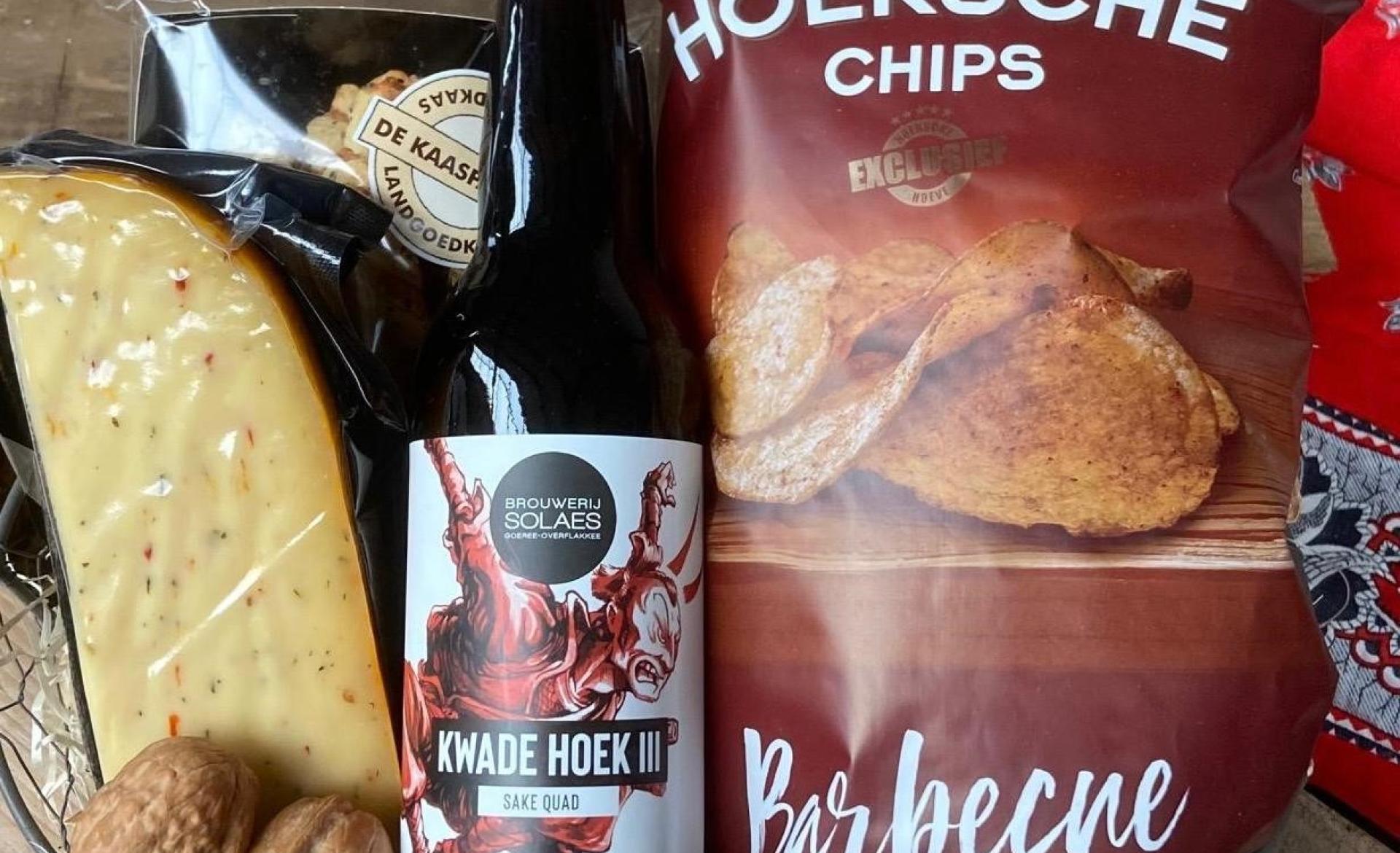 Mandje met wat hartigs en een lekker Flakkees biertje.
