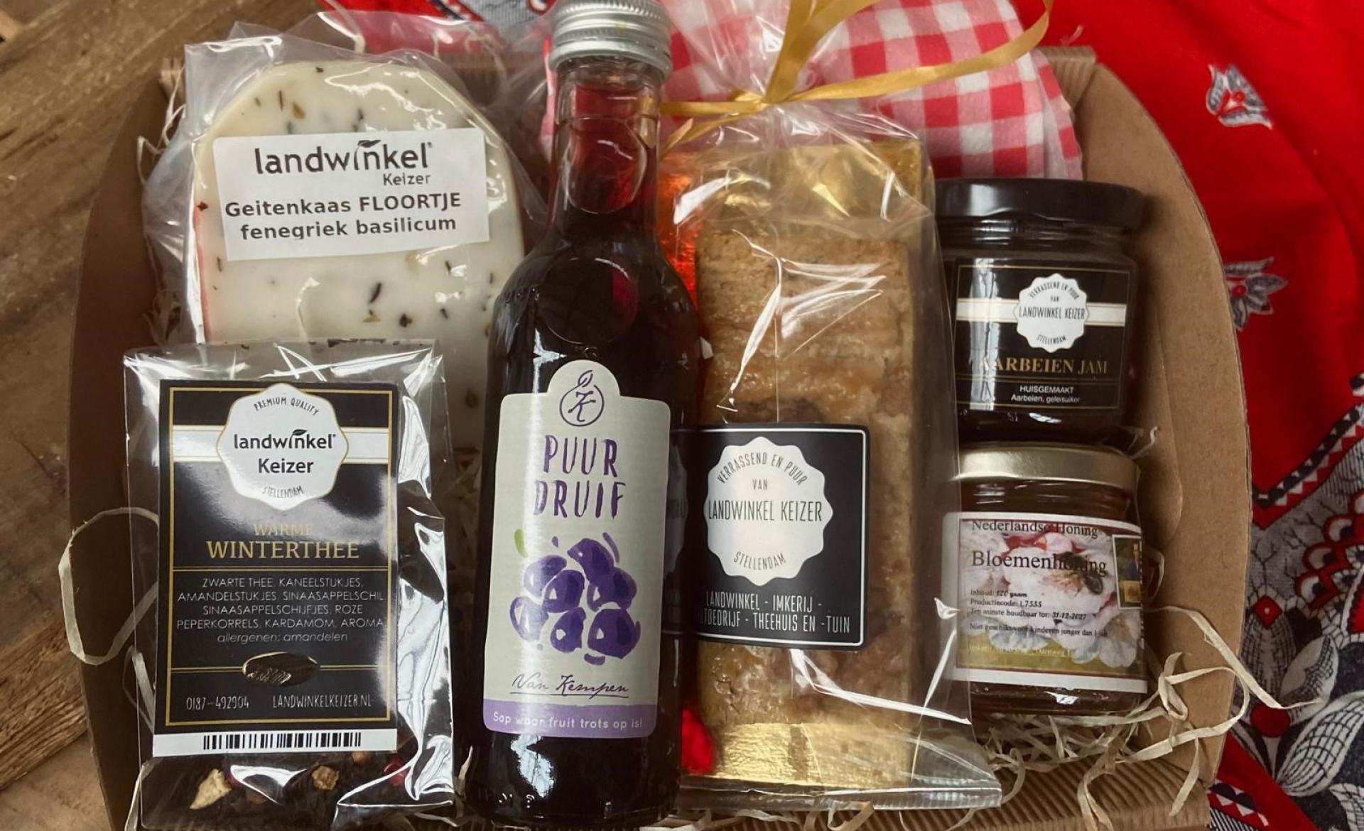 - Druivensap, ambachtelijke jam, honing (eigen imkerij), warme winterthee, geitenkaas fenegriek (Mèkkerstee)